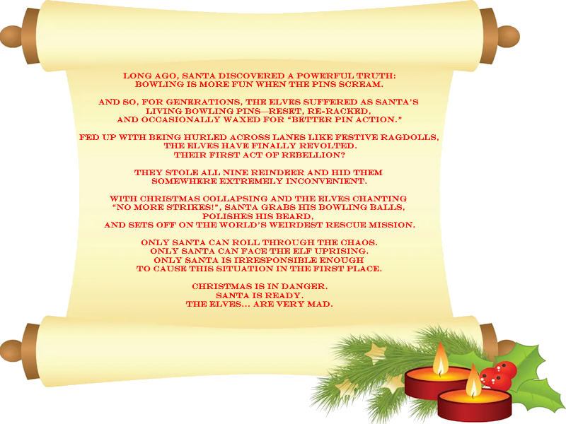 It uses assets from Elf Bowling and is a fan-made game. This project is non-commercial and was made with no intention of copyright infringement. All original rights belong to their respective owners.